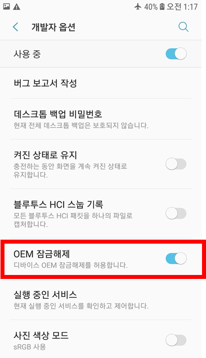해당 옵션은 휴대폰을 잃어버렸을때 누군가가 주워 그폰을 사용하기 위해 공장초기화를 돌리는 행위를 방지하는 기능이다. FRP lock (Factory Reset Protect)이라고도 부르며 개발자모드에서 OEM 잠금해제를 수동으로 허용하지 않으면 평소엔 막혀 있기때문에 공장초기화 모드에 진입할 수 없게 된다. (하지만 방법은 있음.)