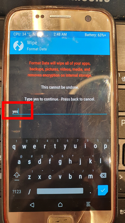 3. 화면 텍스트 필드에 "yes"를 타이핑하고 확인을 눌러준다.
