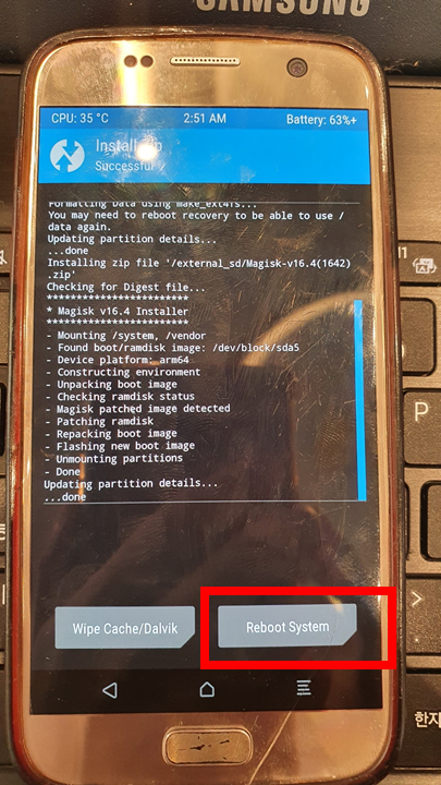 1. 끝났다 이제 리붓 시스템 버튼을 눌러주자.