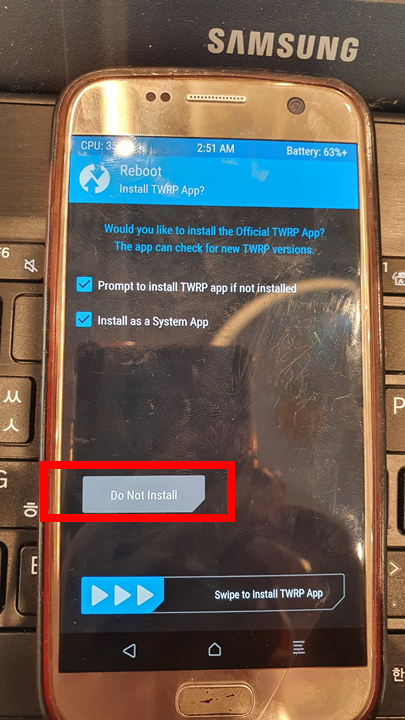2. Do Not Install 해준다. 추가 앱은 필요 없다. 버튼을 누르면 재부팅이 되는데 기다리면 된다.