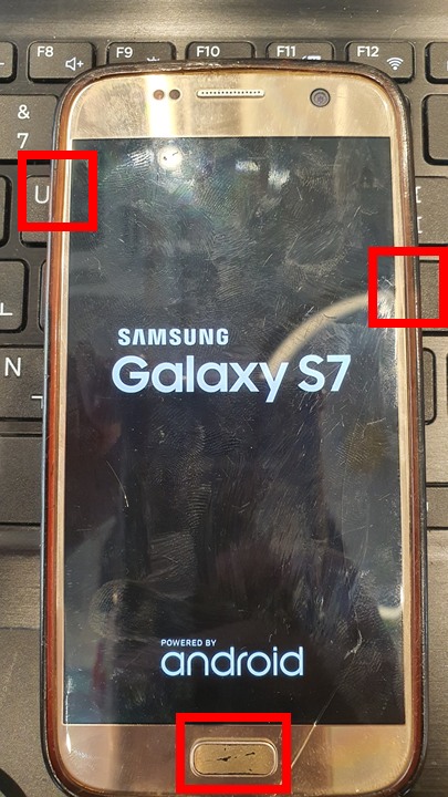 1. 처음에 했던 다운로드 모드가 아닌 리커버리 모드에 진입할 것이기 때문에 볼륨상키+홈키+전원키를 눌러준다.