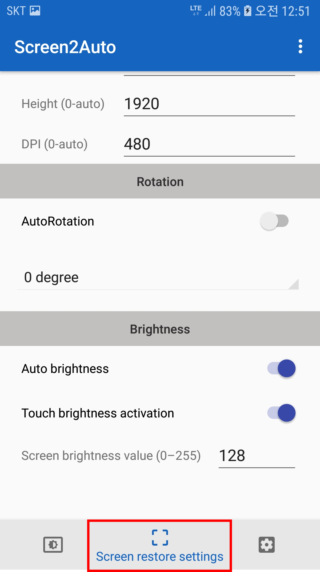 1. 연결 시 폰 밝기를 조정할 수 있다. 0으로 두면 가장 최소 밝기가 되는데 폰화면을 아예 끄는건 없나보다. 글고 화면 강제 회전 여부가 있는데, 해당 옵션을 활성화 시키면 가로모드를 지원하는 앱이 실행되면 무조건 가로모드로 전환이 된다. 또 회전에 대한 각도도 설정이 가능하다.