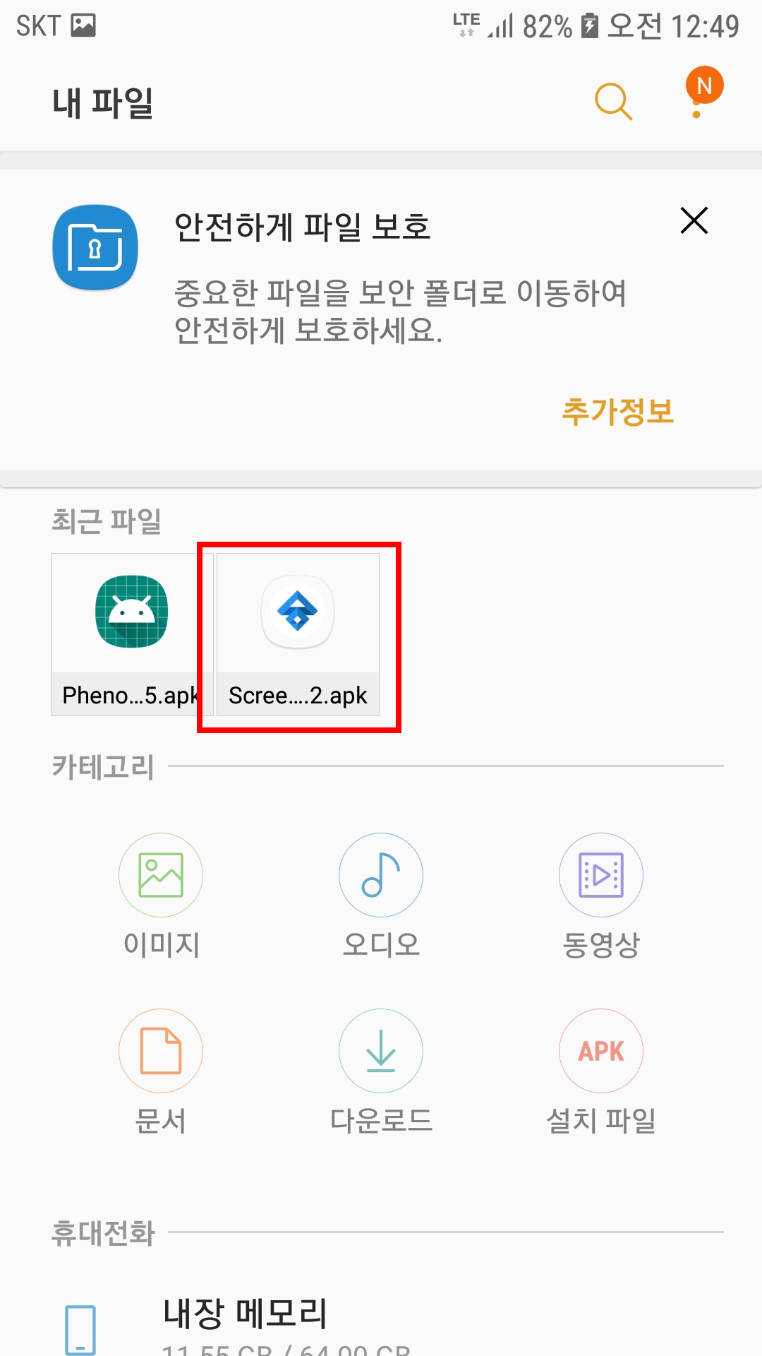 1. 내 파일 앱을 실행시킨다. 꼭 내 파일 앱이 아니더라도 아무 파일관리자 앱을 실행하면 된다.