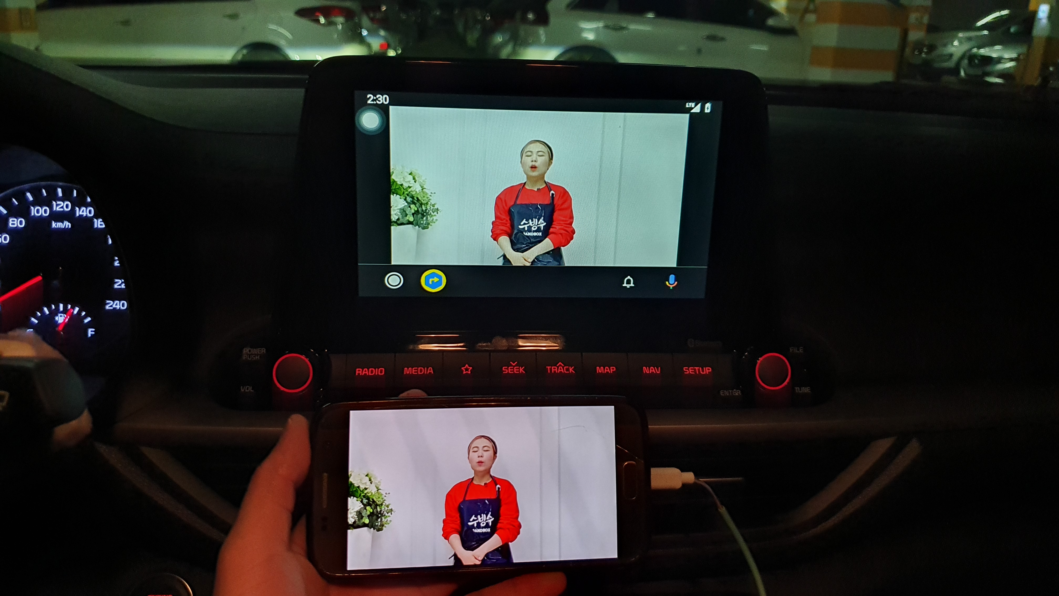 흔들렸는데.. 데시보드 하단에 USB포트에 핸드폰을 연결한다.