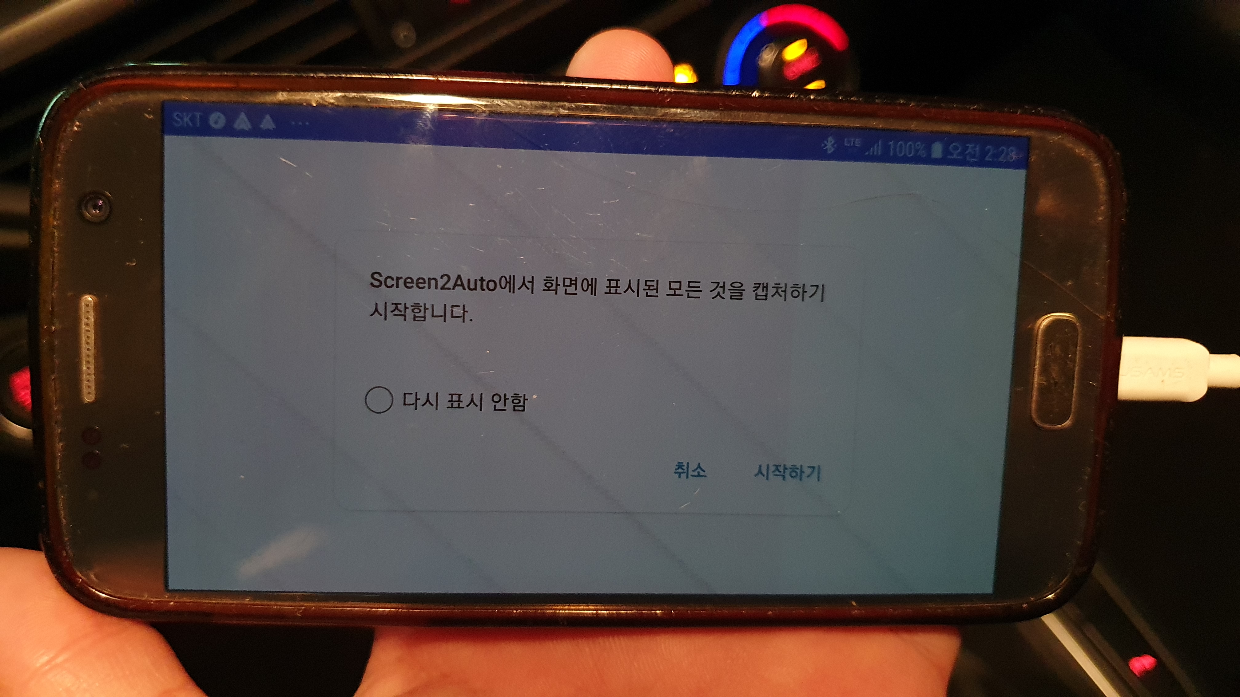 휴대폰을 보니 또 뭘 해달란다. 다시 표시 안함을 선택해주고 시작하기를 눌러주자.