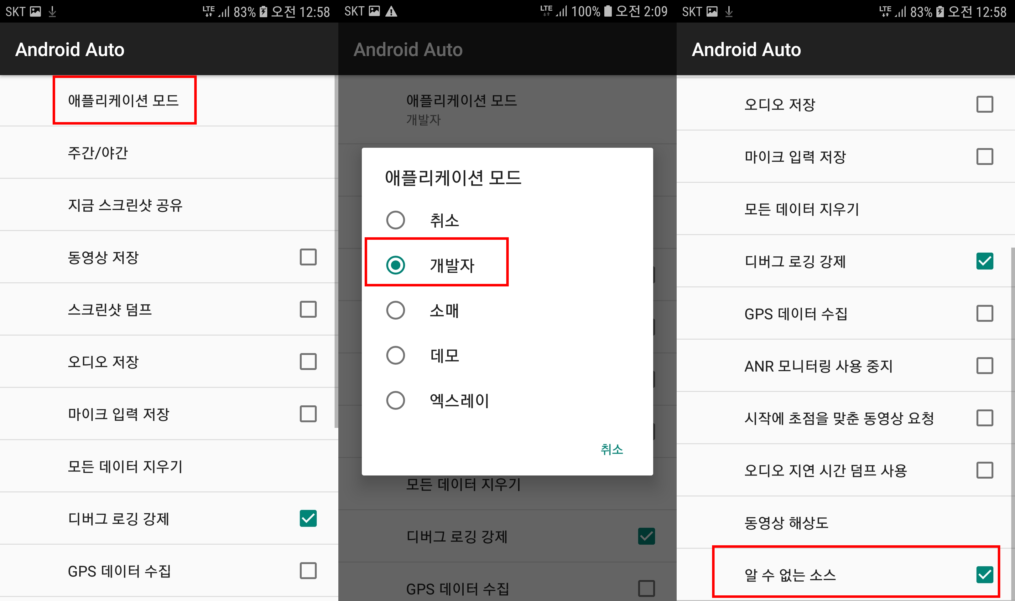 안드로이드 오토가 체크되어 있는지 확인한다.