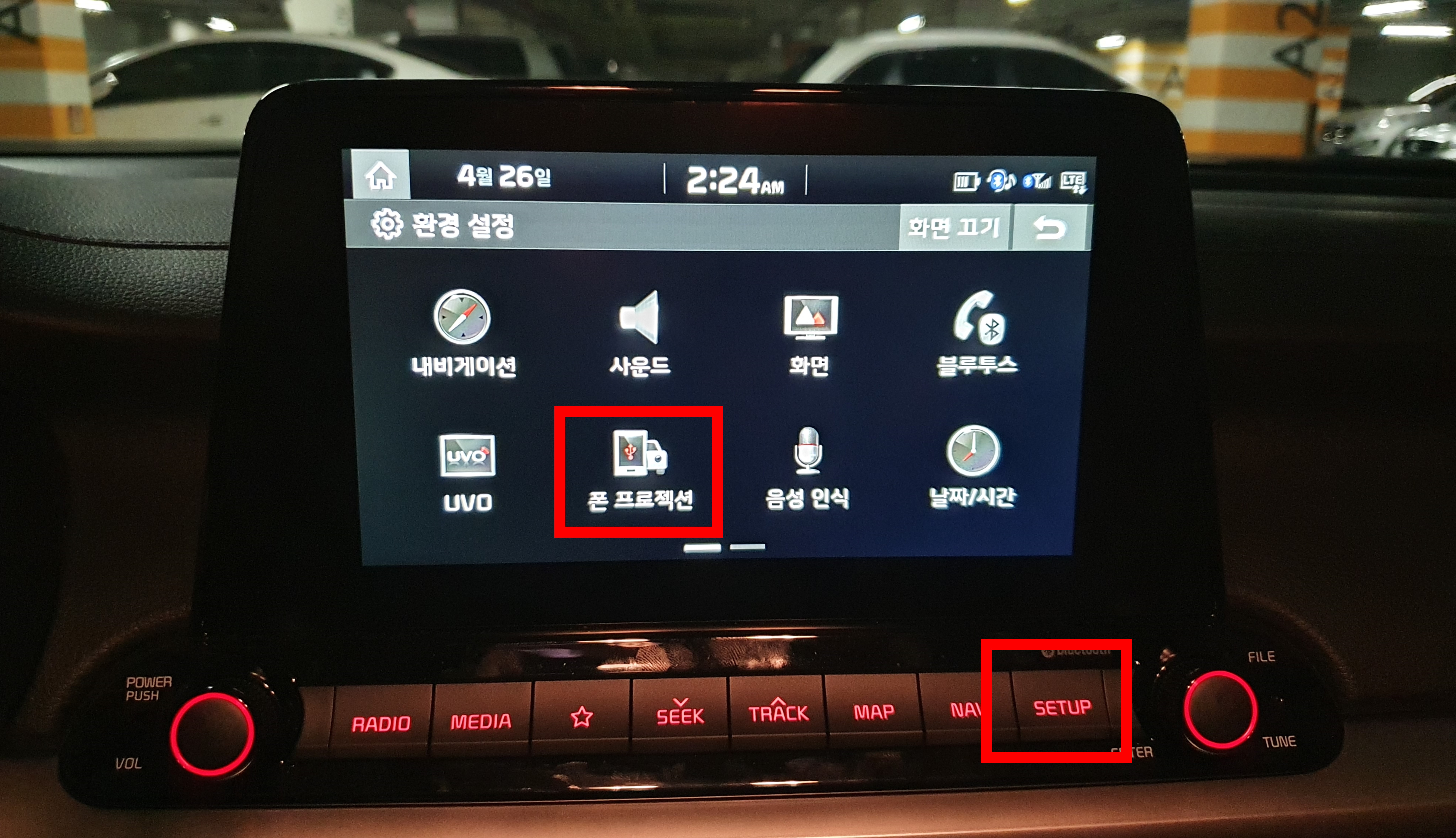 먼저 SETUP 메뉴로 진입하여 "폰 프로젝션"을 클릭한다.