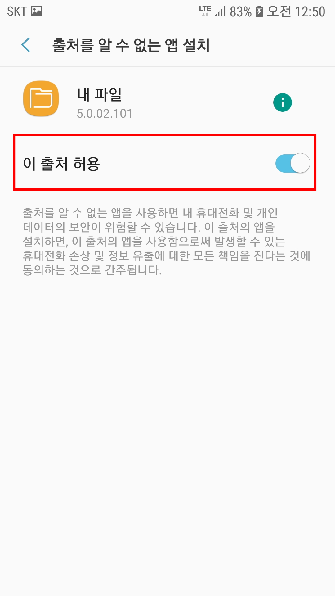 3. 맨 하단에 알 수 없는 소스 허용!