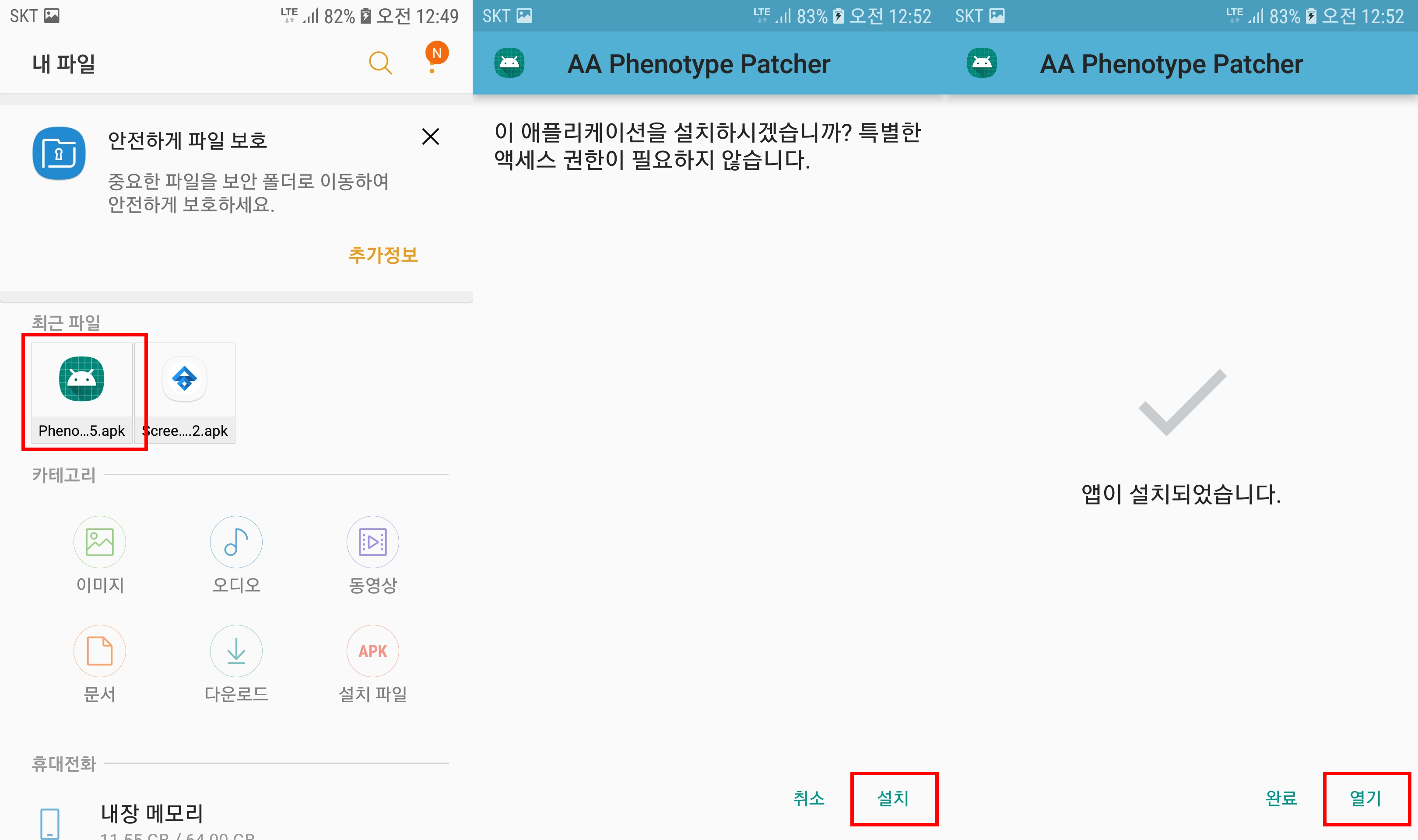 1. 자 다시 파일관리자에서 Phenotype Patcher 앱을 설치해준다.