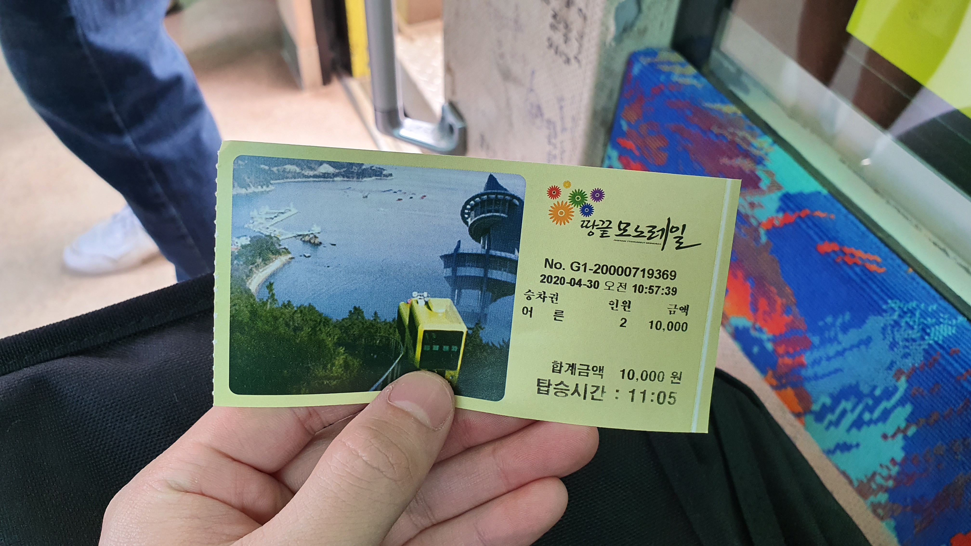 히힛..! 모노레일 탑승권을 구매 했당. 탑승 시간이 써져있기는 하나 그냥 모노레일 열차가 오면 바로 들어가서 출발한다. 사람이 없어서 그랬나?. 그리고 코로나 때문에 탑승전에 관리자들에게 온도체크를 받고 명단에 이름을 적고 탔다.