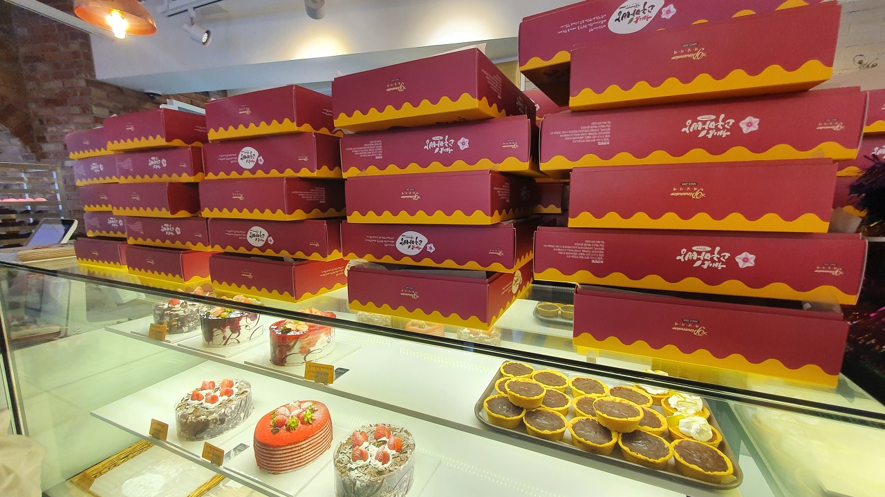 저런 박스에 담아서 선물용으로 많이 사가는 것 같다. 원래 여기 웨이팅이 꽤 있는것 같던데 우리는 운이 좋았는지 우리가 들어오자마자 뒤에 줄이 쭈르륵 이어졌다. 빵 나오는시간도 정해져 있어서 아마도 정시에 한번씩 나오는 것 같았다 우리는 45분 쯤에 가게에 들어가서 아무생각 없이 15분 있다가 운좋게 바로 구매했다.