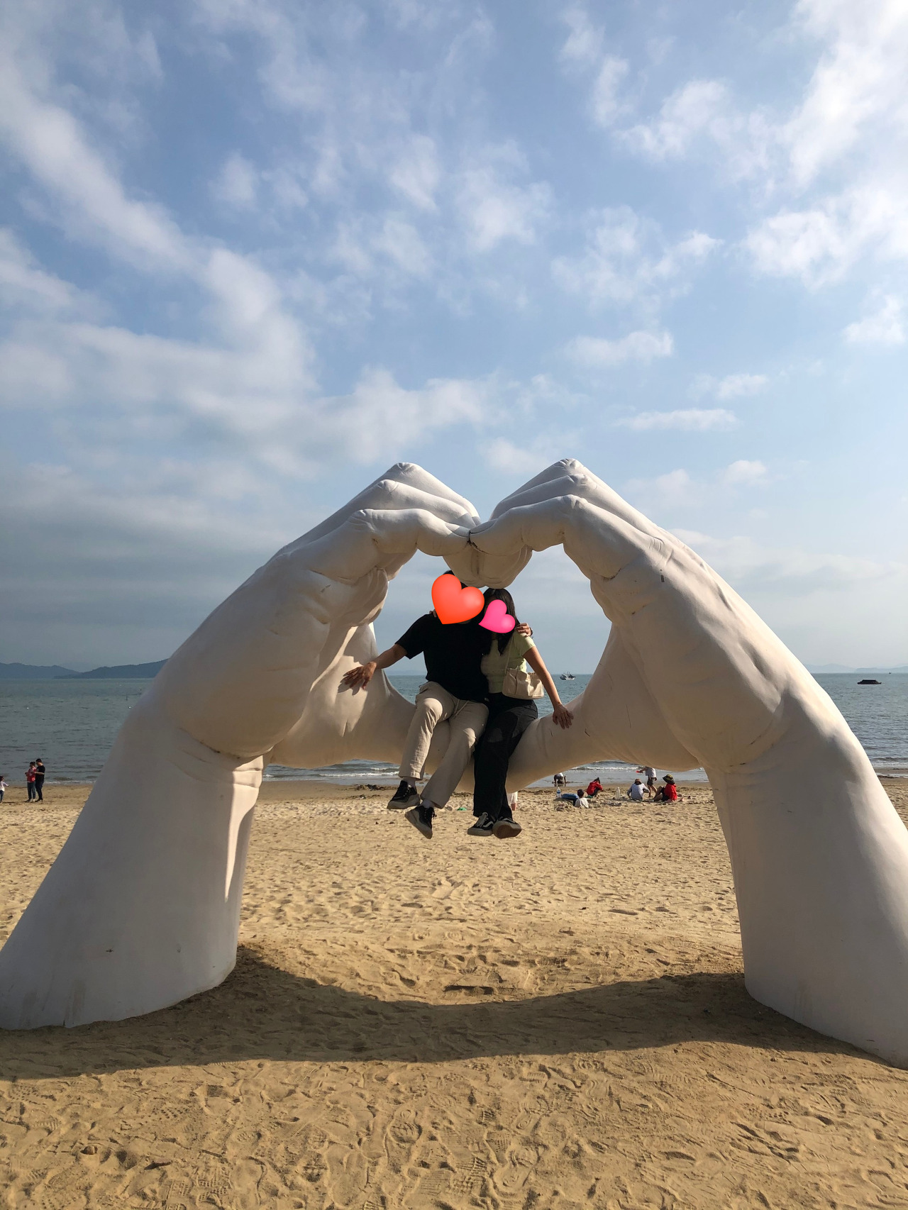 사실 여기 율포 해수욕장에 온 가장큰 이유는 바로 이 하트 조각상을 보려구 왔다 ㅎㅎ 사람들이 여기서 찍으려고 줄 서 있는데 보통 뒤에 분들이 앞에분을 찍어주는 시스템이당.