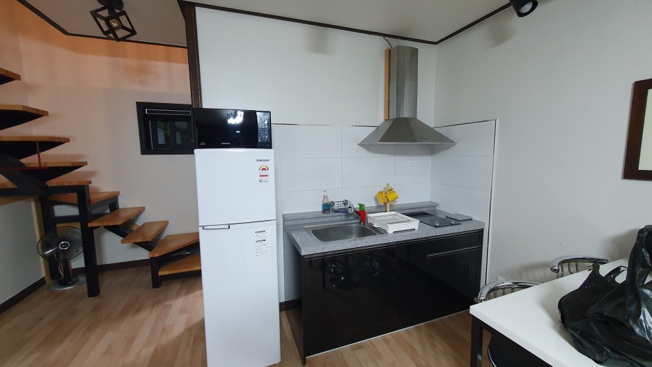 방은 이렇다 1층 이렇게 넓은데 우리가 사용한거라곤 캐리어만 펼쳐놓는데 사용했다..ㅋㅋ 다른숙소보단 확실히 짐 널부러놓는데 편했다. 펜션자체가 신축인가 가구나 가전들이 모두 다 새것들이었다.