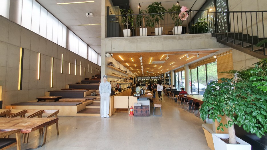 건물구조가 꽤나 신기하다. 1.5룸처럼 나눠놨는데 좌측에는 계단형으로 좌식카페가 있고 우측 1층은 상점. 2층은 차를 먹을 수 있는 테이블이 있다.