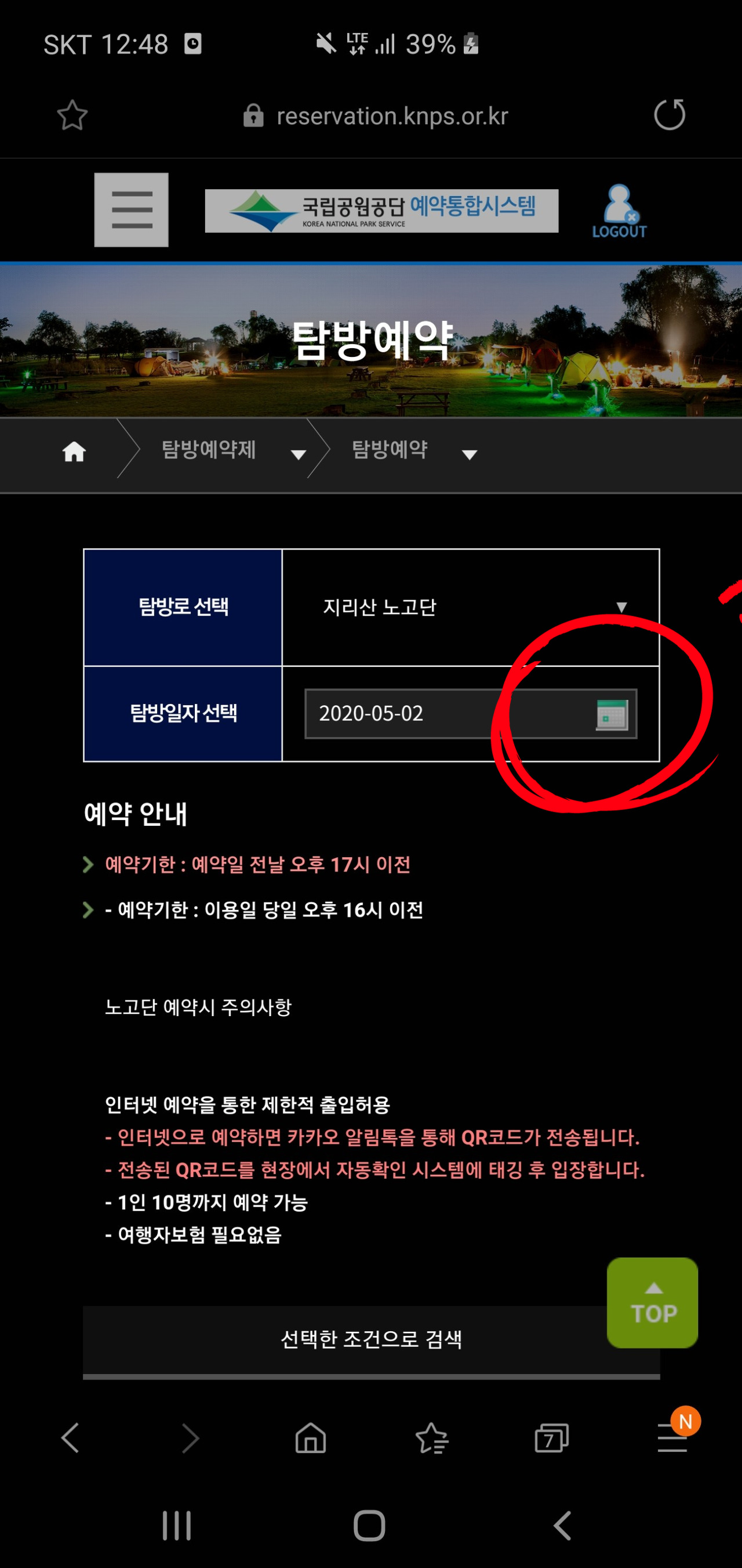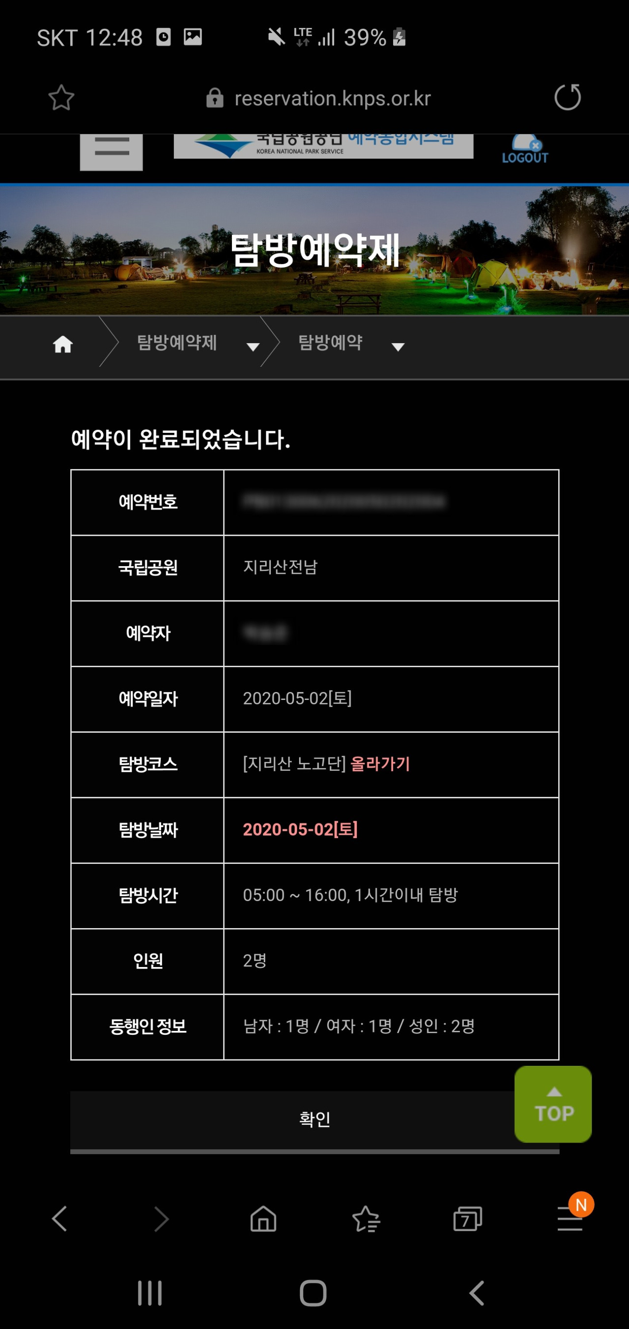 노고단 탐방예약