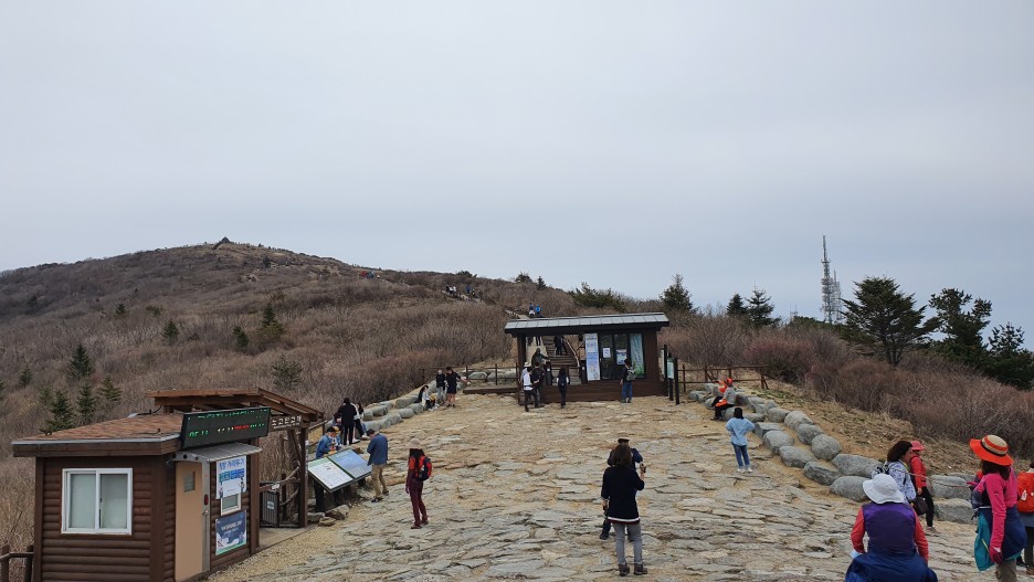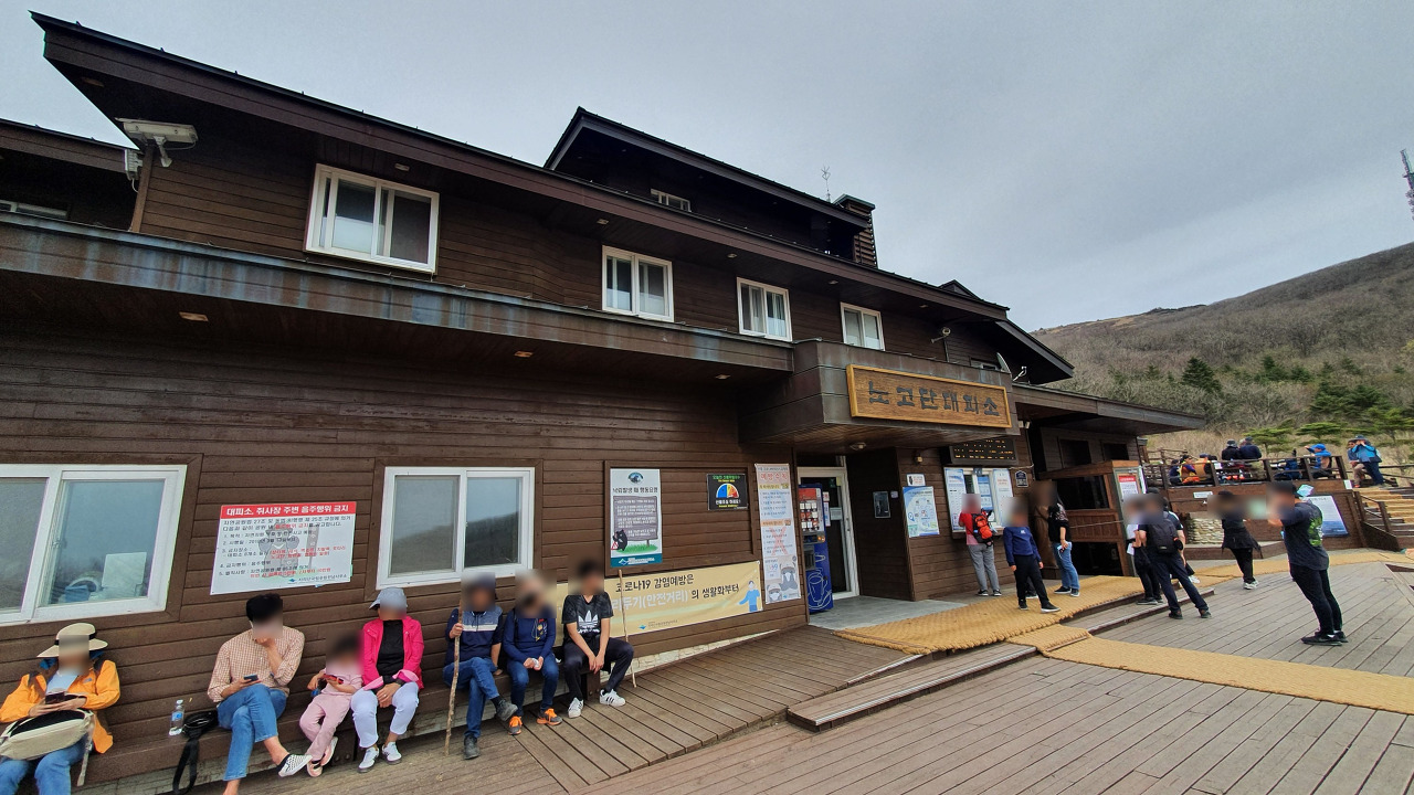 우리가 올라온 곳을 찍어봤다 좌측에는 노고단 대피소가 있고 우측에는 우리가 통과했던 개찰구가 있다.
