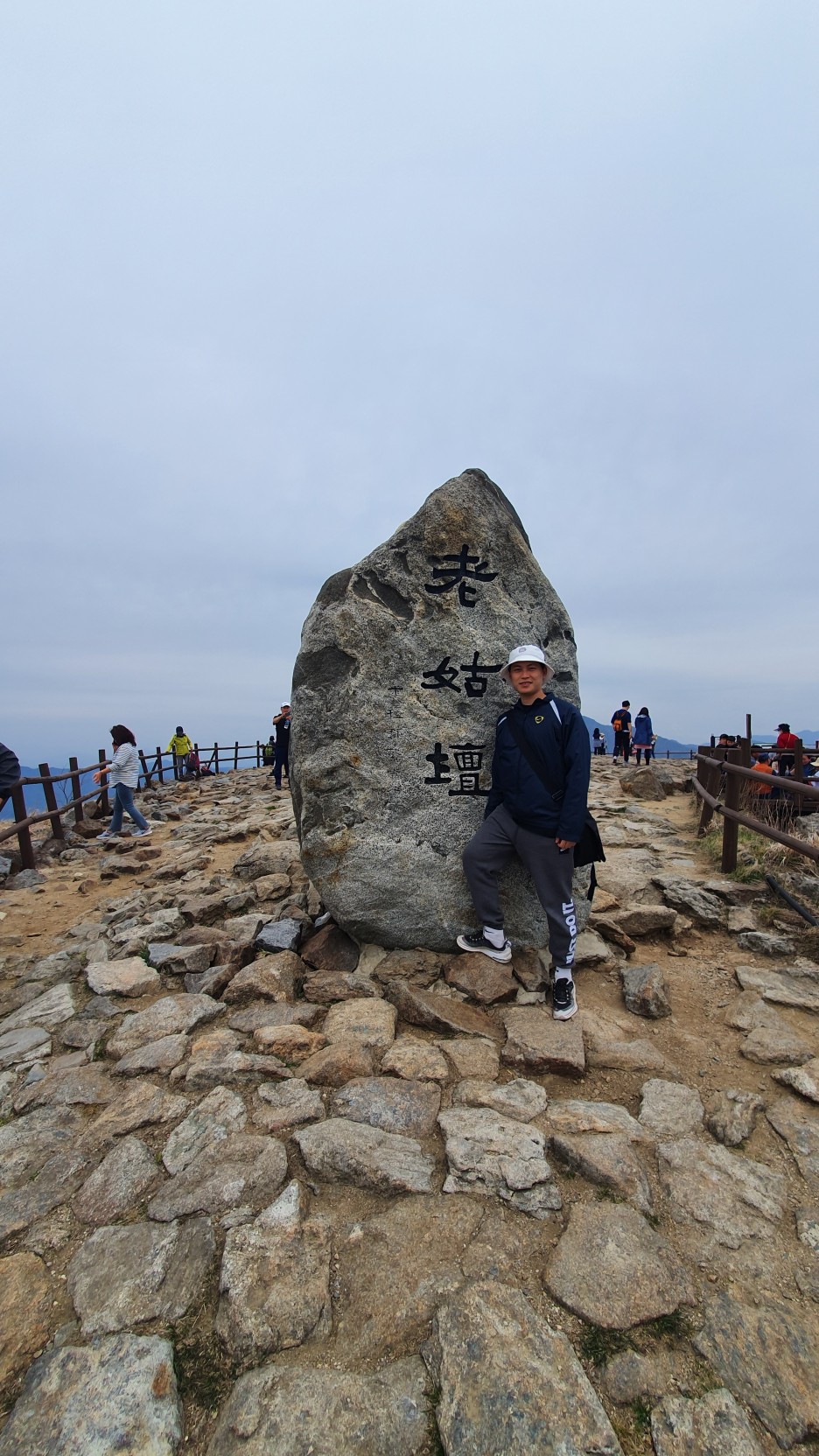 정상에서 찍은 인증샷 ㅎㅎ . 저기 줄서서 찍으면 된다. 그리고 올라갈땐 반팔입고 올라갔는데 정상은 좀 바람이 차고 강하게 불었기 떄문에 바람막이 하나정도는 가져가야할 것 같다.