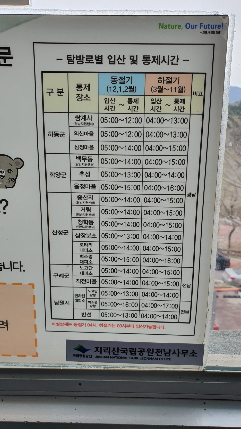노고단 탐방에 관련한 정보가 관리사무소 앞에 있었다. 근데 전날 찾아보니까 노고단 탐박 예약제라는게 있나보다.. 아제가 되었는지 엄청 생소하다.. 산을.. 예약하고 가야한다고? 그냥 무시하다가 혹시나 전날 새벽에 찾아보니 진짜 예약을 해야하는거였다 ㅋㅋ