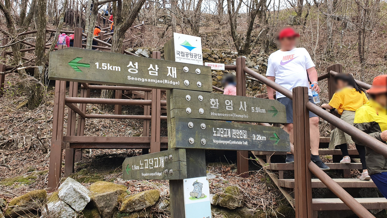 우리가 내려올 때는 편안한 길로 왔으나 아직 초입이니 우리는 사람들이 주로 올라가는 노고단 고개 길로 올라갔다.