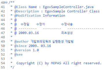 2. public class EgovSampleController 이부분을 보자. 이건 java에대한 기본 지식이 있으면 저 public calss의 의미는 알것이고 비전공자분들은 저거 크게 신경 안써도 된다. 학교에서 시험볼때나 저거만지지 스프링 프로젝트 하다보면 거의 만지는일은 없다.. EgovSampleController는 이 컨트롤러의 이름이다. 이건 좌측 패키지 익스플로어에 나오는 파일명과 일치해야한다. 자 2번까지도 별거 없다. 3번으로 가자