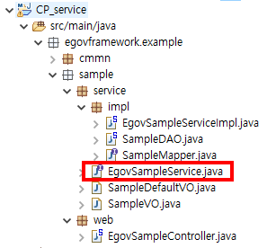 1. sampleService란다. 이건 우리가 예제로 만들어져 있는 서비스다. 그 상세 기능은 저 파일안에 정의되어 이씅며 저 서비스가 하는내용으론 게시판의 글을 조회하고, 수정하고, 목록을 가져오는 아주 범생이같은 일을 처리해주는 서비스다.