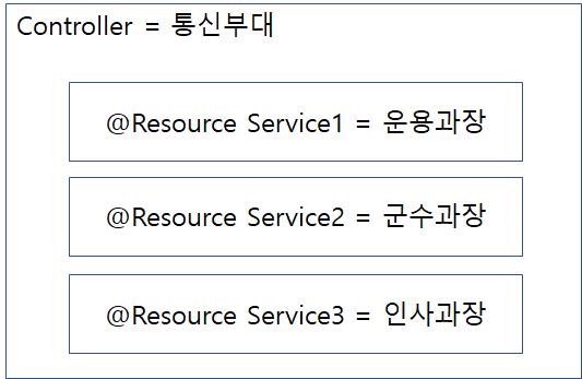 좀 더 나아가자면 웹 서비스가 처음 구동될때 생성된 POJO라고 불리는 함수나 상속, 구현이 없이 순수히 데이터만 가진 객체를 생성하는데 물론 그 데이터마다 name이 있다. 그 당시 만들어진것을 지금 저 Controller가 지금 매칭을 시키는 것이다. 시작하면서 만들었던 그 객체!! 우리가 지금 써야해!! 하고 Resource 어노테이션을 이용해서 연결시키는 것이다.