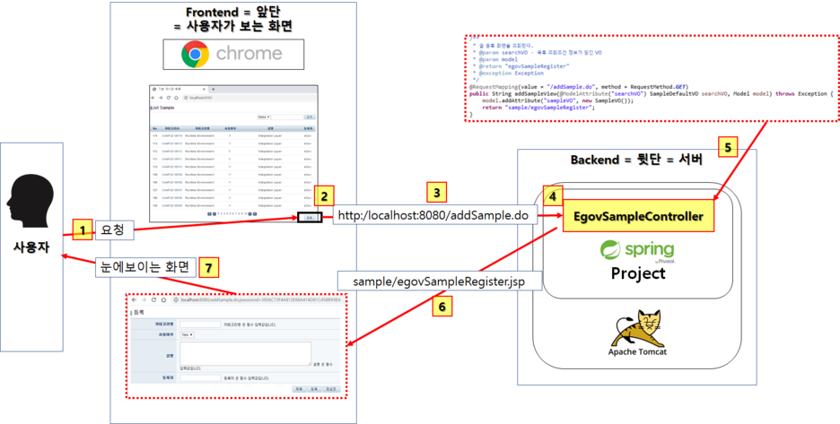 7. WAS가 5번에서 넘어온 정보들을 sample/egovSampleRegister.jsp에 뿌려 조립을해서 그 결과를 사용자에게 보여준다!!!!!!!!!!!