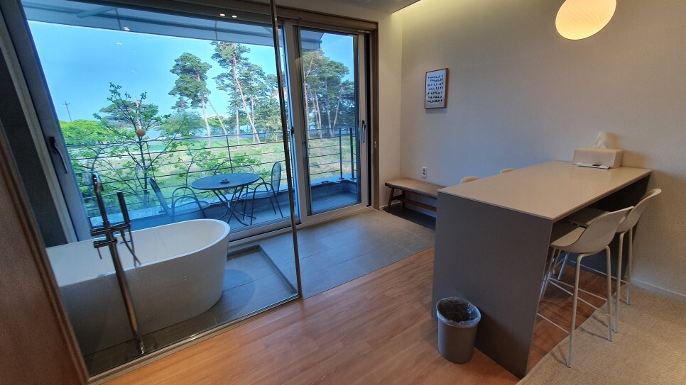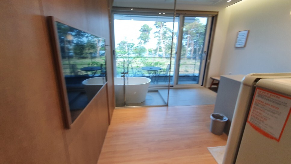 흥분해서 사진이 흔들렸나보다. 빨리 포스팅할 생각에... 인테리어가 가구에 다 짜맞춰진듯한 디테일이었다. 창쪽에 욕조가 있는것도 킬포였다.